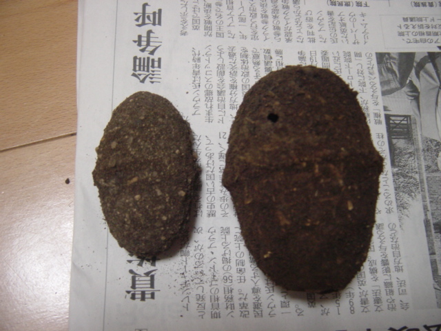 左は♀で50mmUP固体の繭