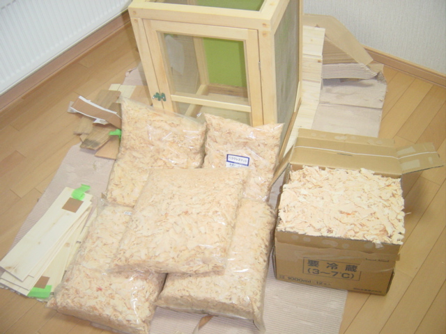 沢山のチップと飼育ケージ